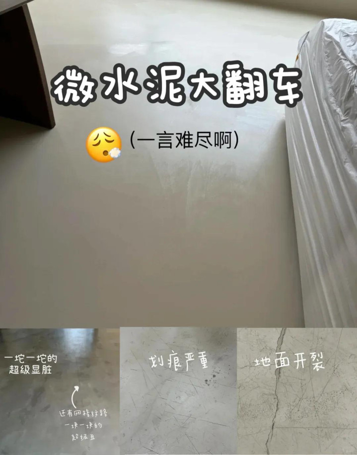 为什么这么说呢?因为微水泥太容易翻车了,真的是又贵又容易翻车,哪怕你用的是特别贵的进口产品,假如使用保养不当,依旧避免不了翻车的结局,无非就是晚一点而已。